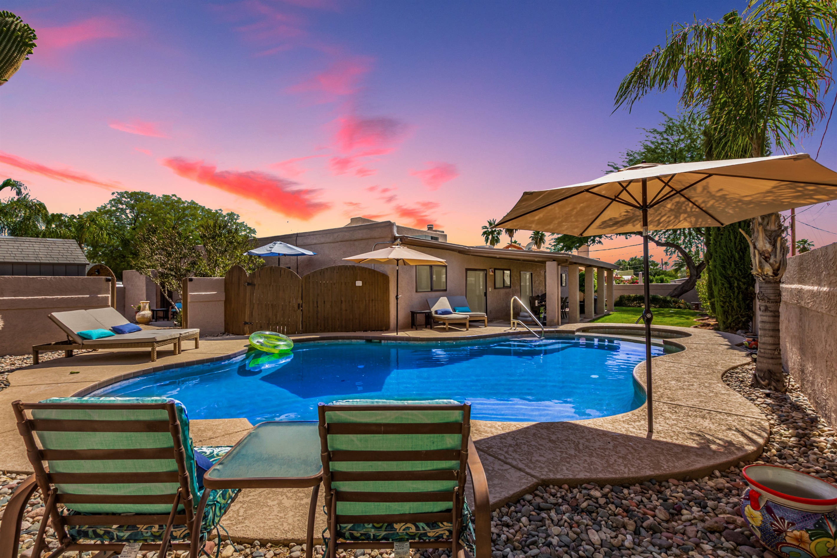Relax and enjoy breathtaking Superstition Mountain views from the backyard of this charming 3-bedroom, 2-bath home in Gold Canyon East. The outdoor space features a cozy fireplace, a putting green, and stunning desert scenery, perfect for relaxing or entertaining. Inside, you’ll find an open living area and a fully equipped kitchen. Located near hiking trails, golf courses, and local amenities, this home offers the perfect blend of comfort and natural beauty. TPT 21589729